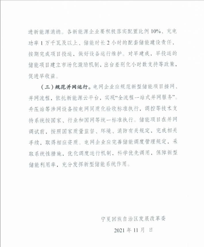 試點(diǎn)項(xiàng)目投產(chǎn)要求:吳忠市、中衛(wèi)市及寧東于2022年11月底確定擬開展試點(diǎn)項(xiàng)目名單,上報(bào)自治區(qū)發(fā)展改革委。按照先到先得原則,儲(chǔ)能試點(diǎn)項(xiàng)目須在2022年9月30日之前建成并網(wǎng),并在通過各地發(fā)改部門及電網(wǎng)企業(yè)組織驗(yàn)收后同意上報(bào)我委,確定為自治區(qū)儲(chǔ)能試點(diǎn)示范項(xiàng)目,享受相關(guān)政策。2022年9月30日后并網(wǎng)的項(xiàng)目不再享受試點(diǎn)支持政策。