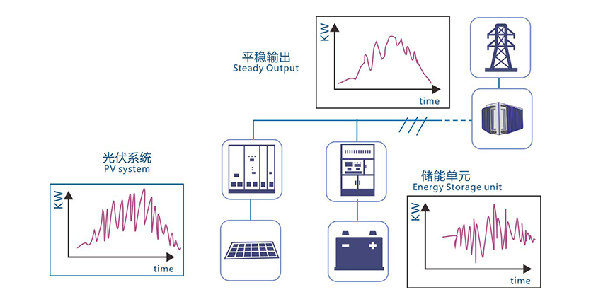 針對風(fēng)能或太陽能發(fā)電不連續(xù)、不穩(wěn)定、不可控的特點,我司提供配套的儲能系統(tǒng),可平滑風(fēng)力及光伏發(fā)電輸出,實現(xiàn)跟蹤計劃發(fā)電。